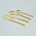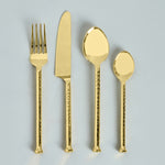 100% Handcrafted in stainless steel with fine gold finish. Subtle hammering adds that elegant touch to this cutlery set. It’s a must have in every house.